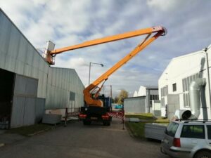Pracovní výška 27m, boční dosah až 15 m, váha 21t, podvozek 6×6, nosnost v 1×1,5m velké kleci 360 kg. Výborné vlastnosti pro venkovní práce v opravdových výškách. Jednoduché, hydraulické ovládání, bez elektroniky, každá funkce má svoji páčku. Ideální na práce u výškových budov, hal, bytových domů, atp..